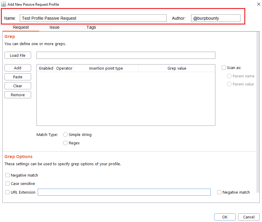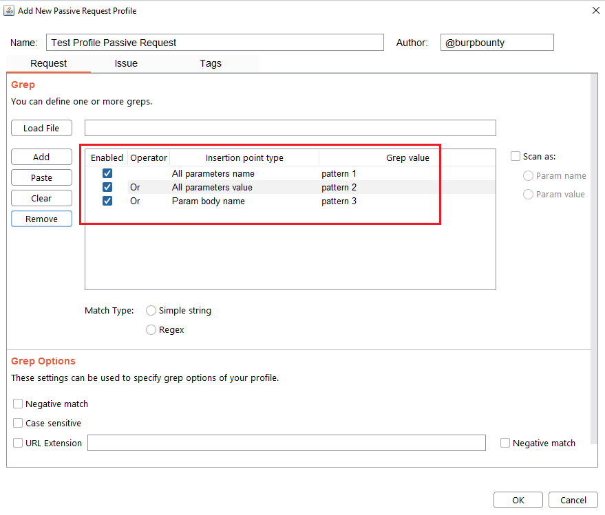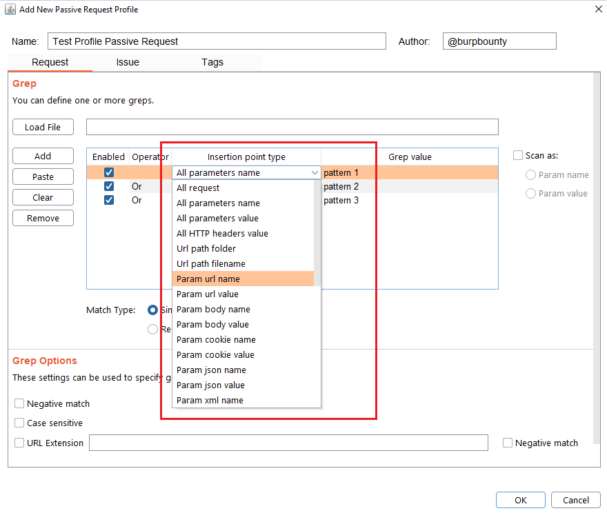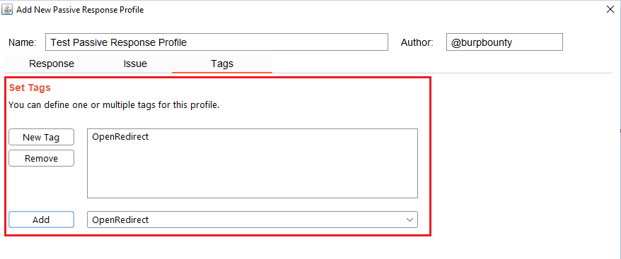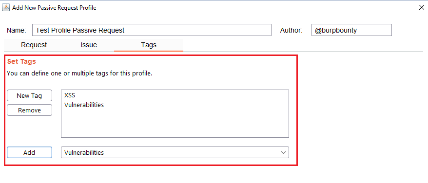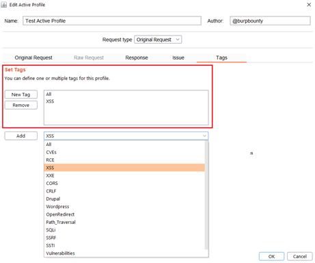 GBounty Profiles Designer gives you the ability to create your own vulnerability profiles to the passive scanner.