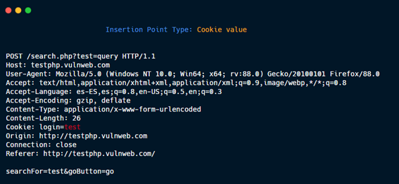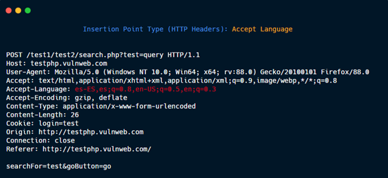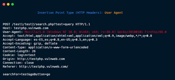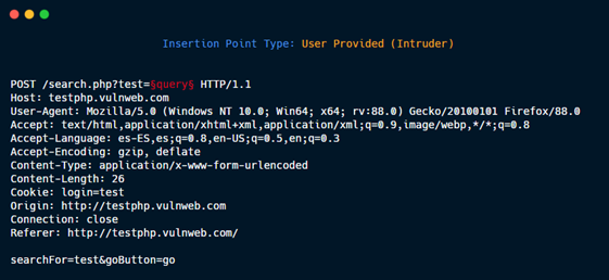 The insertion points are the zones of the HTTP request where the specified payload will be placed. For example in this HTTP request: