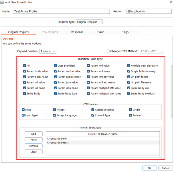 Original Request: The extension get the original request that is sended to the scanner, extract insertion points, put the payloads in the selected insertion points, makes the necessary modifications and sends it to the server.