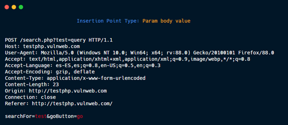 If the payload <script>alert (1)</script> is specified and the insertion point “Param body value” is selected, the HTTP requests that GBounty will make will be: