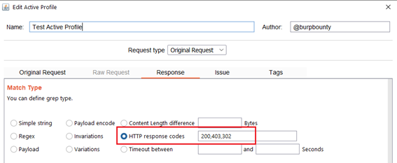 Status code: The pattern will only be searched in the HTTP response if the Status code of the HTTP response is equal to the “status code” field. You can specify multiple status code separated by commas. You can also specify that ONLY look for the pattern in the HTTP response if the status code is NOT equal to this field, marking the “negative match” checkbox.